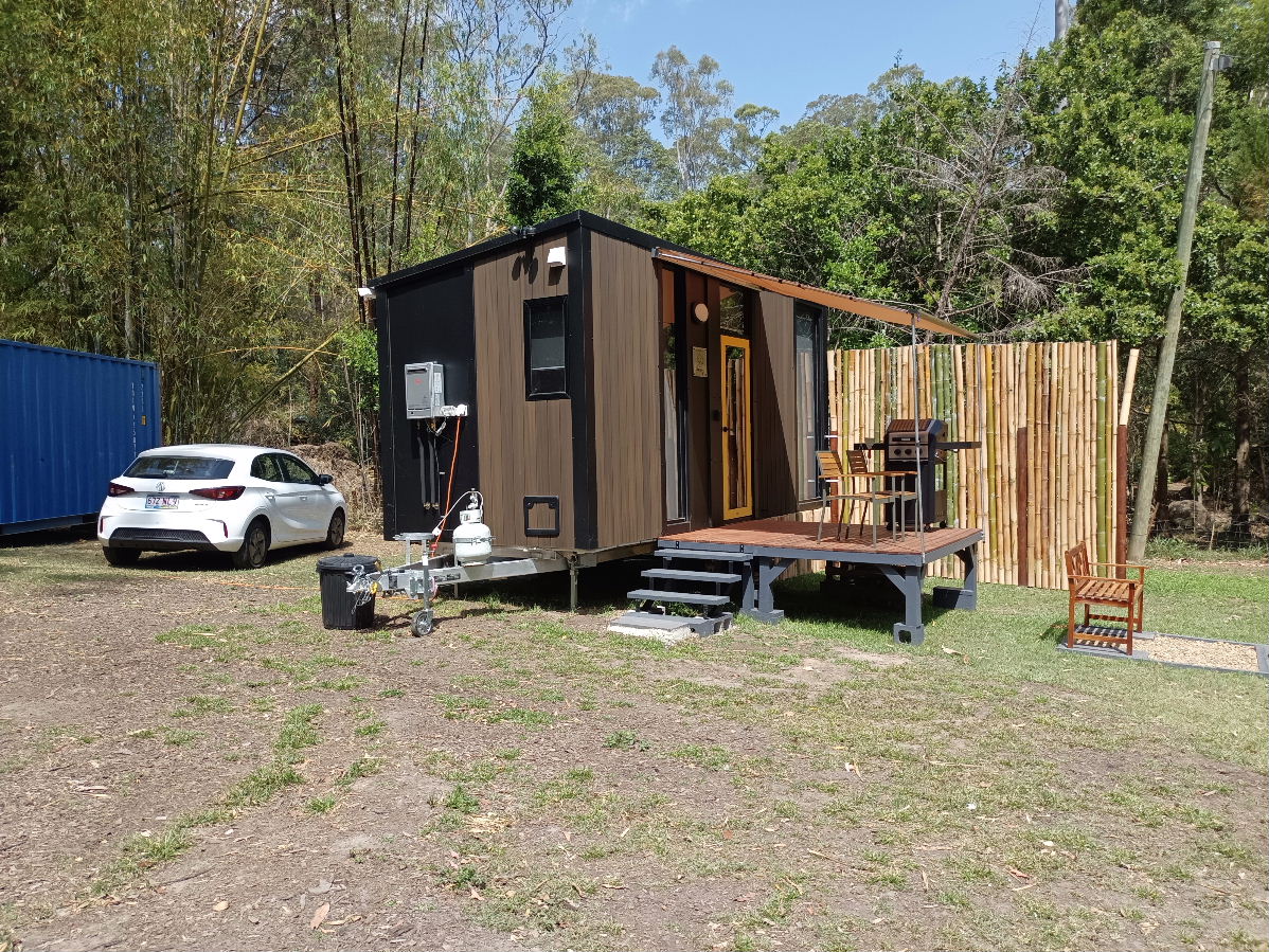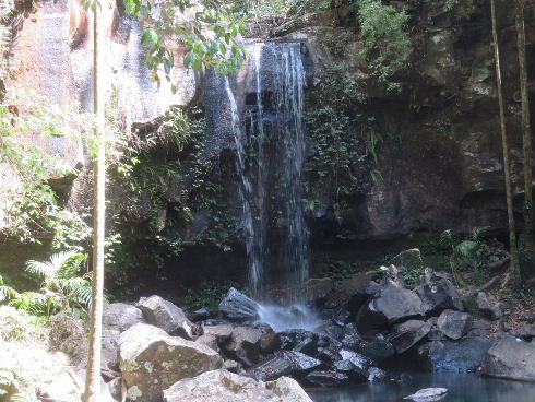 At the conclusion of the conference (Thursday afternoon) we immediately went to the rental car depot near Brisbane airport to collect our hire car, and then drove South. On arrival (in the evening) in Cedar Creek Falls near Tamborine (inland from the Gold Coast) for our accommodation, here is our "Tiny Away" cabin. It was located in a bush setting, with quite a bit of fauna around, and within easy walking distance of Cedar Creek Falls. The bush turkey kindly paid us a visit with a great clatter on our roof at 05:10 the first night.