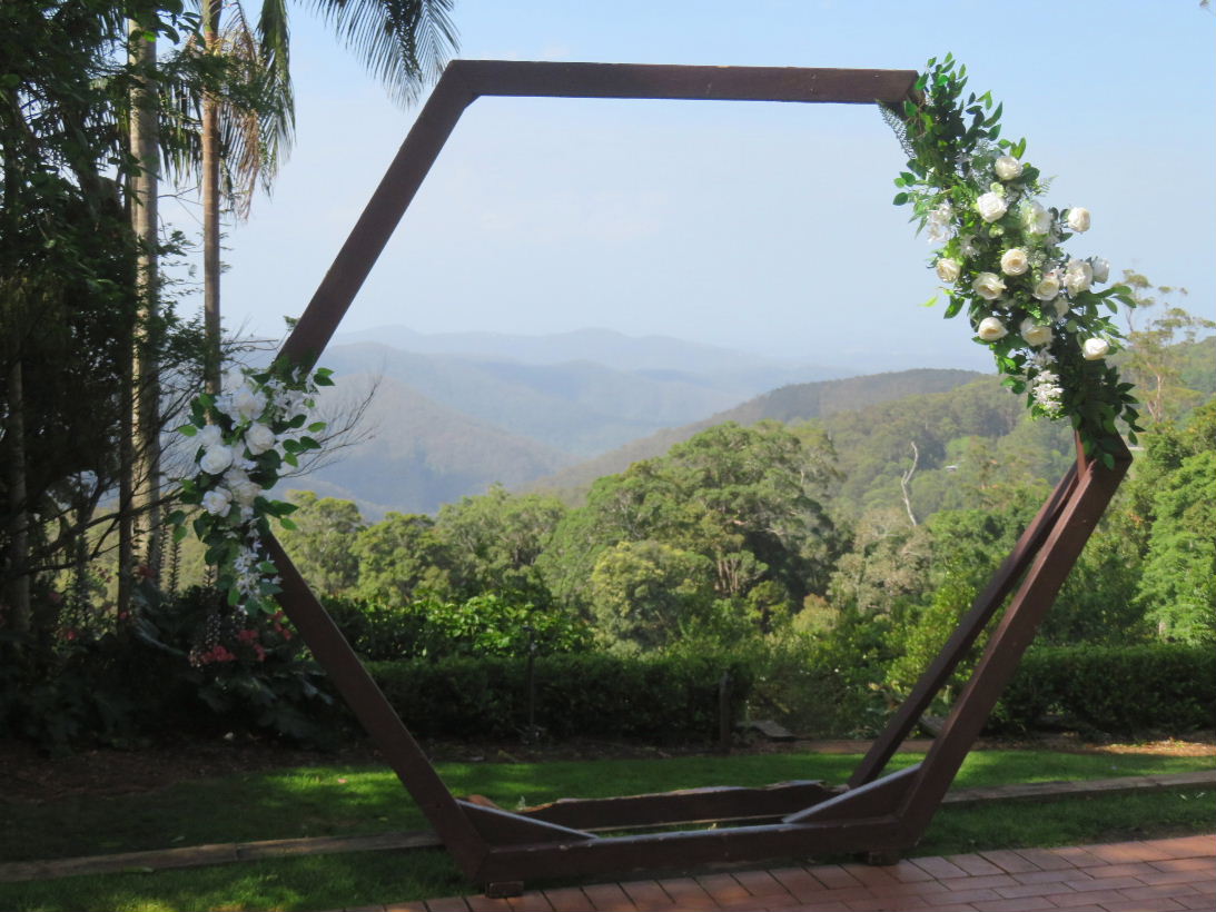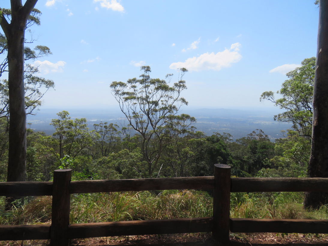 One of the features of Mount Tamborine is that (as the name implies) it is high up with wonderful views West (over a long valley) and East (towards the Gold Coast). Here are views West from Knoll Lookout and Hang Glider Launch site, and (East) at St Bernards Hotel (with bonus wedding gardens).
